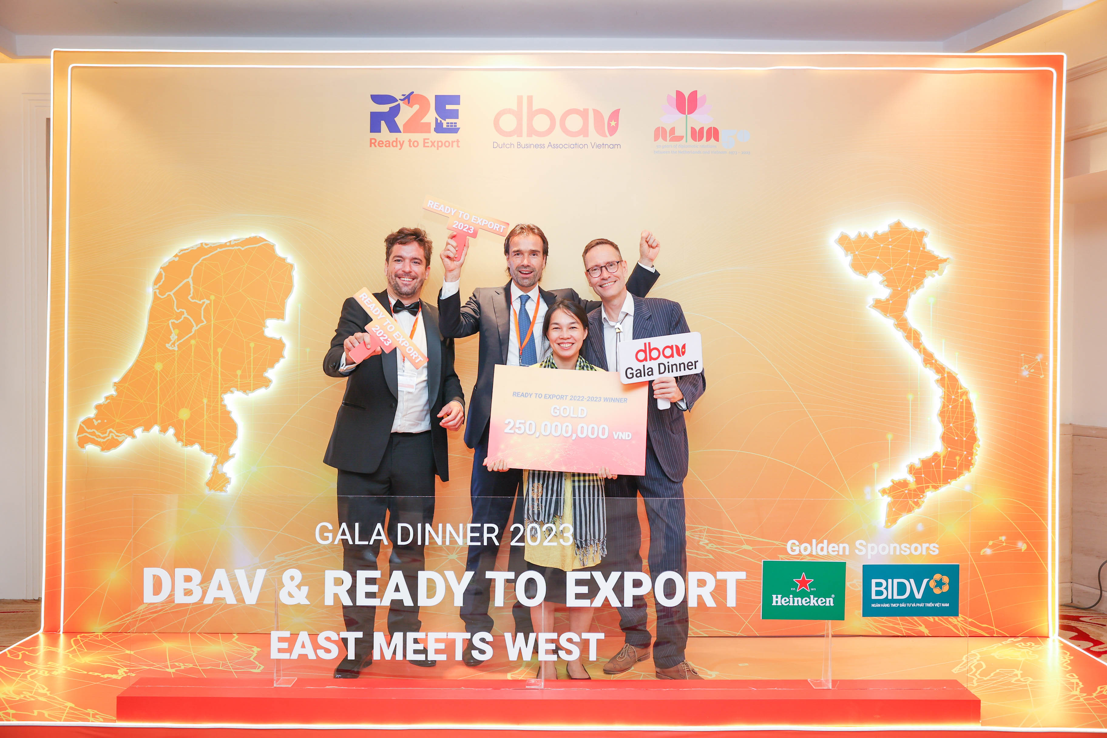 The Dutch Business Association Vietnam hosts the "Ready to Export Gala Dinner – East Meets West" on April 20, 2023. Celebrating 50 years of Dutch-Vietnamese relations, this event unites both business worlds. It honors the success of the Ready to Export program, empowering Vietnamese SMEs for global markets through training and mentoring. Winners receive up to 250 million VND in investment capital to boost their export potential.