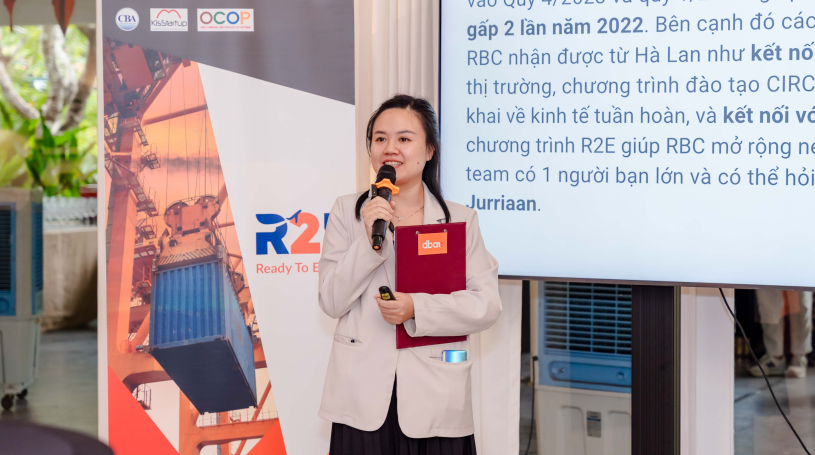 RBC has greatly benefited from the R2E program, from seed funding that enabled VIETALITÉ trials in late 2023 and early 2024, doubling RBC's 2023 sales compared to 2022. Connections made through the program with Dutch organizations like PUM for market development, CIRCLE training in the Netherlands and Germany on circular economy, and networking with Vietnamese enterprises in R2E expanded RBC's network and partnerships. Notably, RBC also gained a valuable mentor, Mr. Jurriaan Meyer.